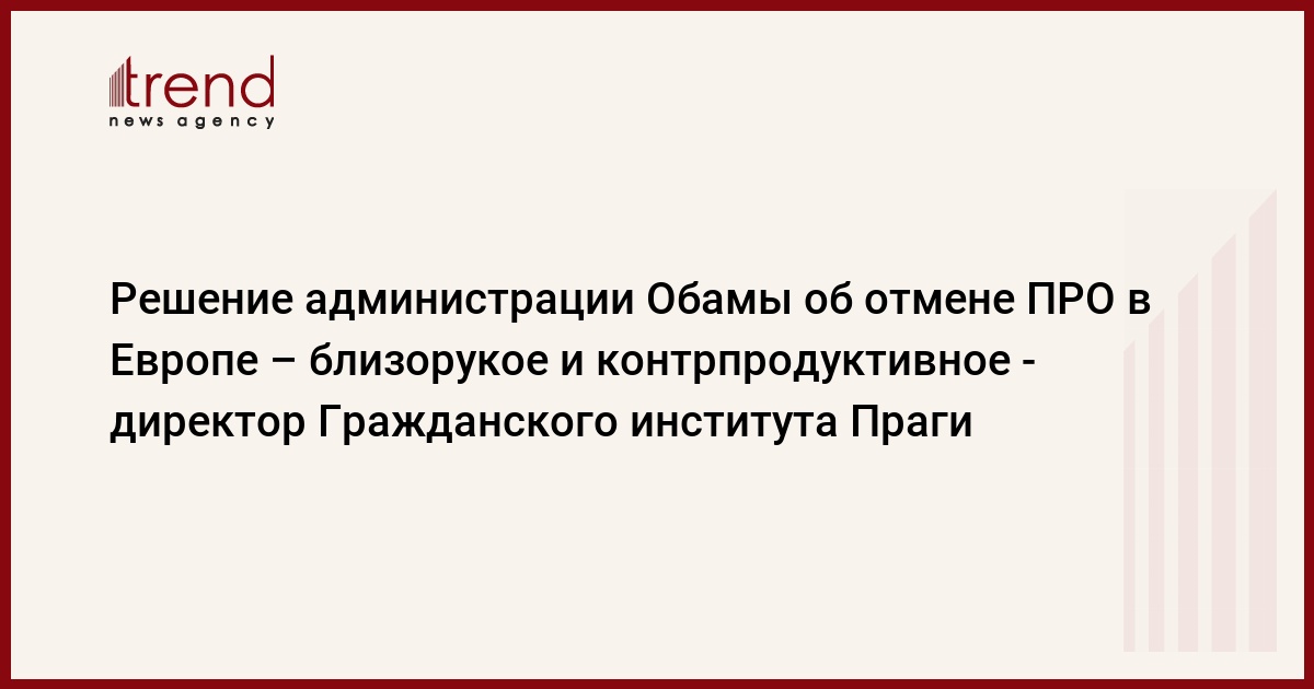 Решение администрации Обамы об отмене ПРО в Европе – близорукое и контpпродуктивное - директор Гражданского института Праги