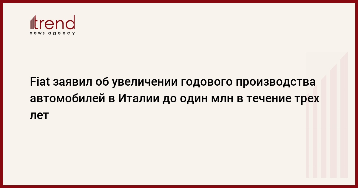 Итальянский автопроизводитель Fiat заявил об увеличении годового производства автомобилей в Италии до 1 млн. в течение ближайших трех лет. При этом руководство компании планирует закрыть свой завод на Сицилии, передает Associated Press со ссылкой на главного управляющего Fiat Сержио Марчионне, пишет РБК.