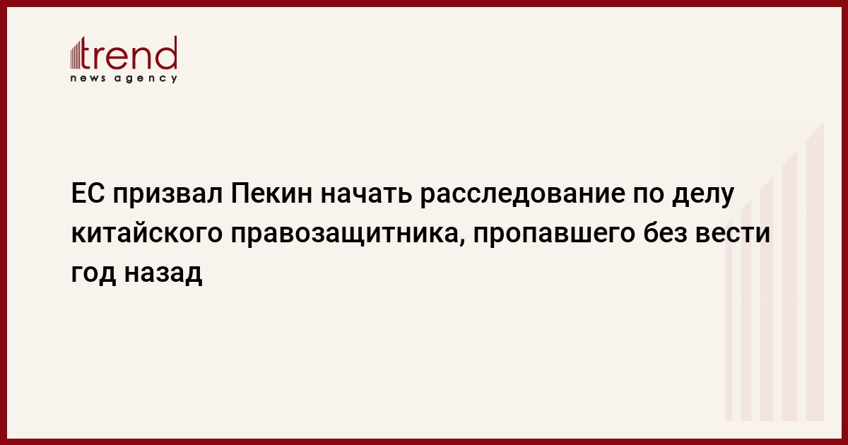 Европейский союз призвал власти Китая начать расследование по делу правозащитника и адвоката Гао Чжишэна, пропавшего без вести в прошлом году. С таким заявлением выступила верховный представитель Евросоюза по вопросам внешней политики и безопасности баронесса Кэтрин Эштон, передает Associated Press. По словам К.Эштон, власти КНР должны незамедлительно начать прозрачное и открытое расследование исчезновения китайского правозащитника, пишет РБК.