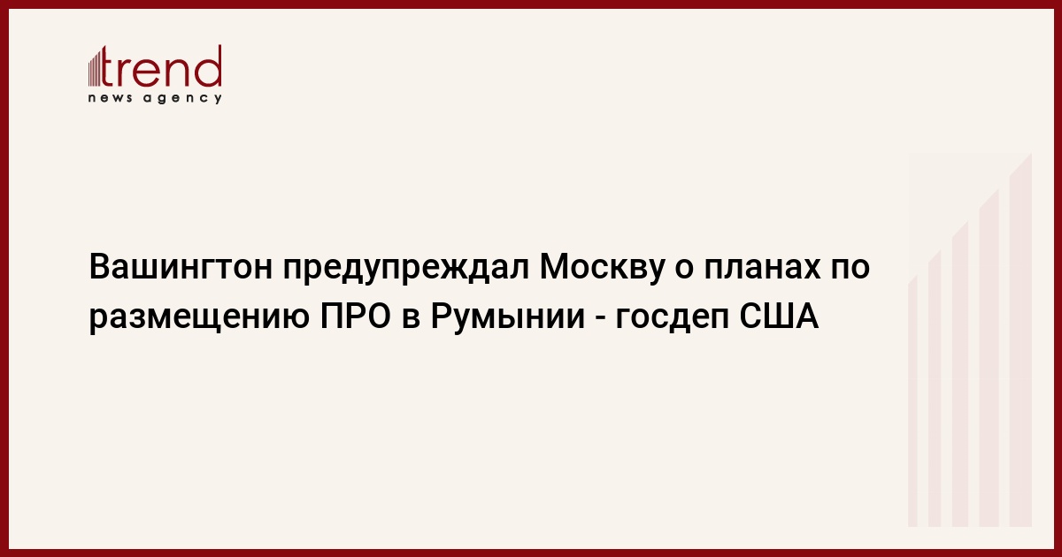 "Президент США Обама объявлял об этом в сентябре, и наши российские партнеры были информированы о том, что президент предоставит Румынии возможность разместить элементы ПРО", - заявила она в ходе состоявшейся телефонной пресс конференции в понедельник.