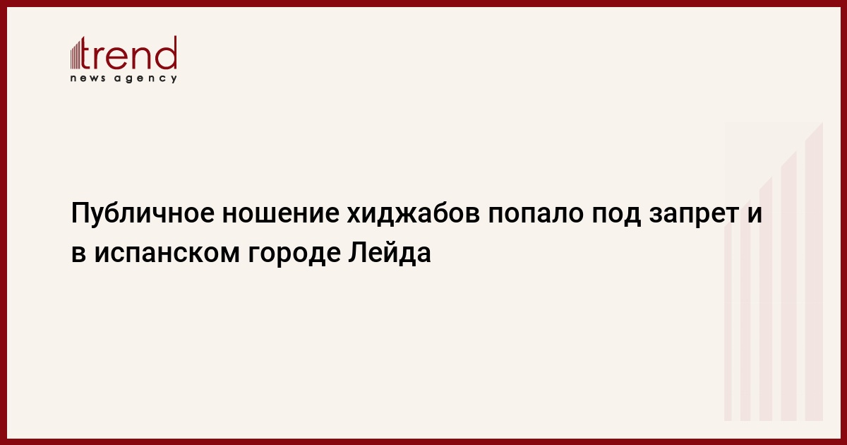 Мэрия испанского города Лейда в Каталонии запретила в пятницу ношение в общественных местах женских мусульманских платков, полностью закрывающих волосы и шею, передали испанские СМИ.