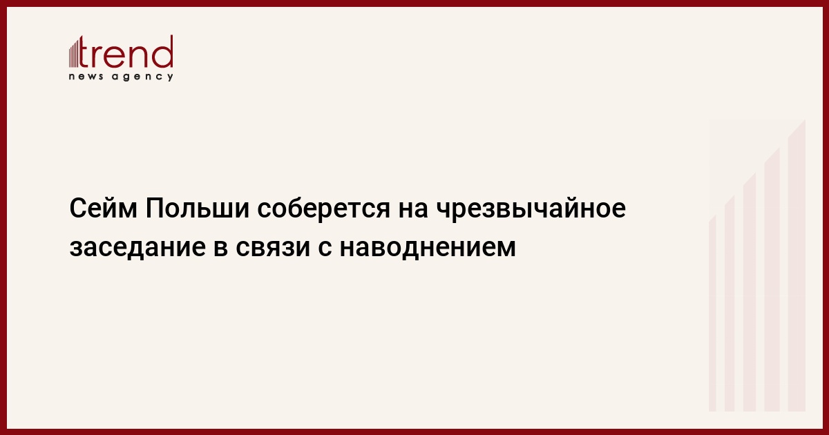 Сейм Польши (нижняя палата парламента) в четверг соберется на чрезвычайное заседание в связи с наводнением на юго-западе страны, сообщил журналистам спикер Сейма Гжегож Схетына, передает РИА Новости.