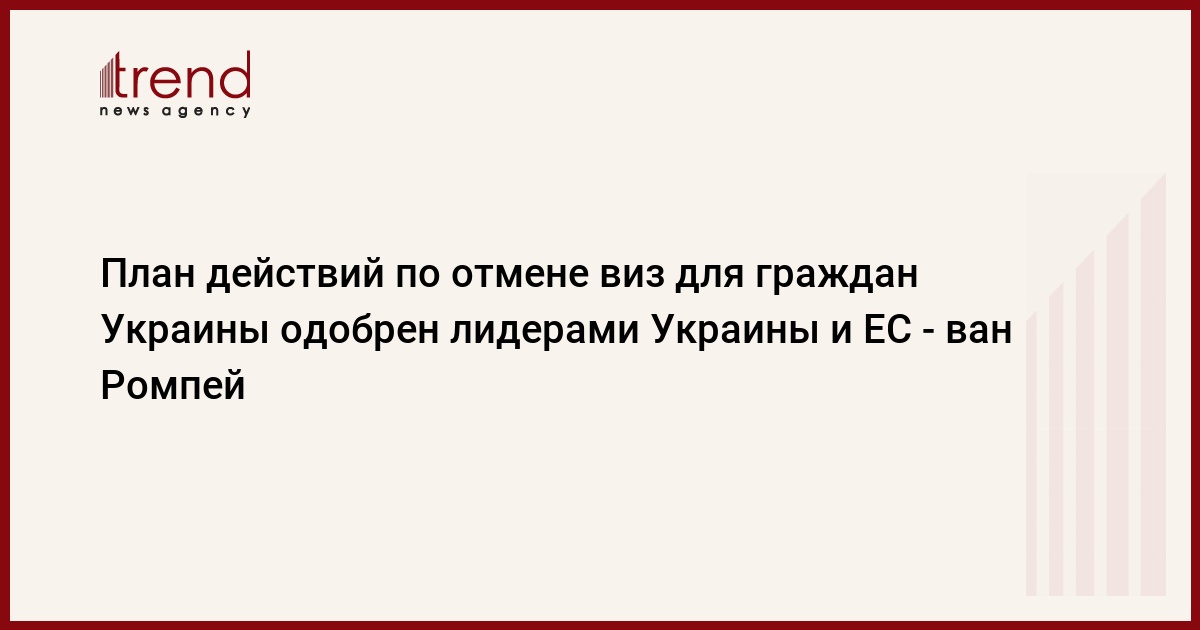 План действий по отмене краткосрочных виз в Евросоюз для граждан Украины утвержден на саммите Украина - ЕС в понедельник в Брюсселе, сообщил председатель Европейского совета Херман ван Ромпей, пишет РИА Новости.