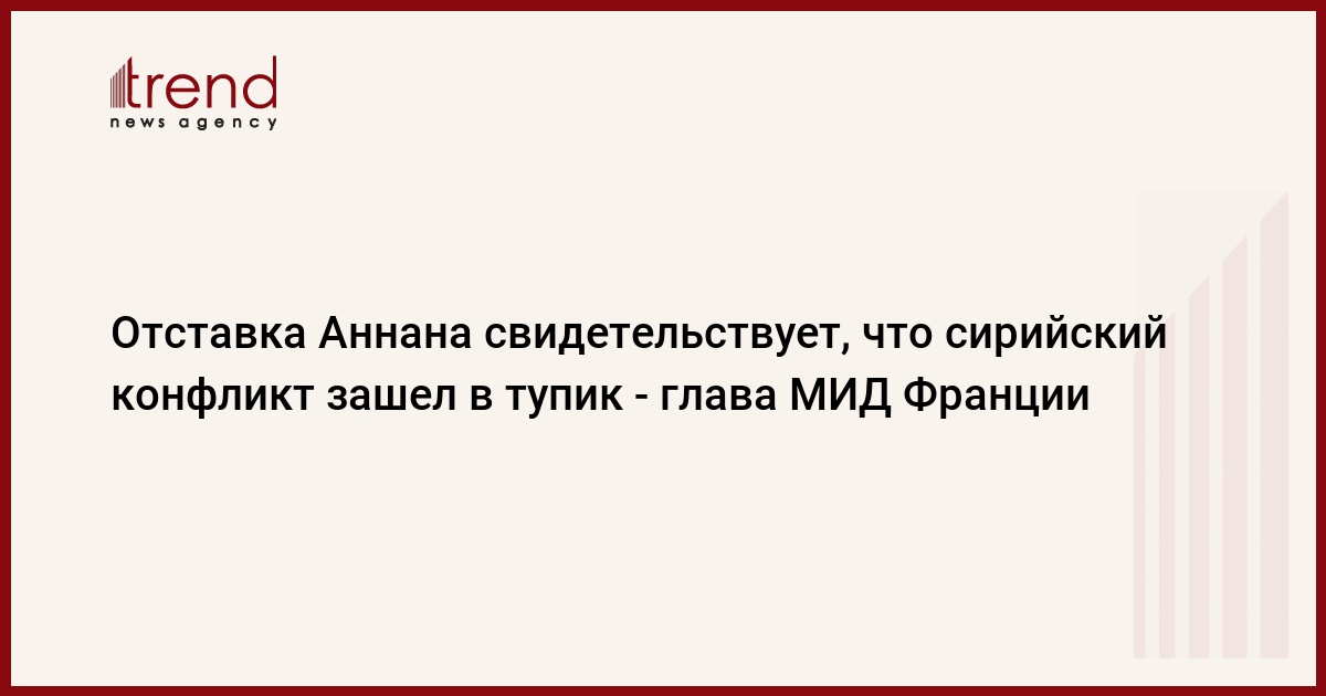 Отставка спецпредставителя ООН и ЛАГ по Сирии Кофи Аннана говорит о том, что сирийский конфликт зашел в тупик, считает глава МИД Франции Лоран Фабиус.