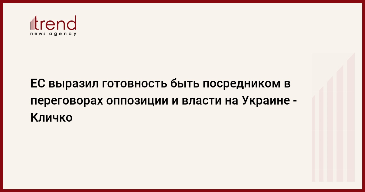 Европейский союз выразил готовность делегировать посредников высокого уровня на переговоры оппозиции и власти для решения политического кризиса на Украине. Об этом заявил во вторник Виталий Кличко после встречи с верховным представителем ЕС по иностранным делам и политике безопасности Кэтрин Эштон, передает ИТАР-ТАСС.