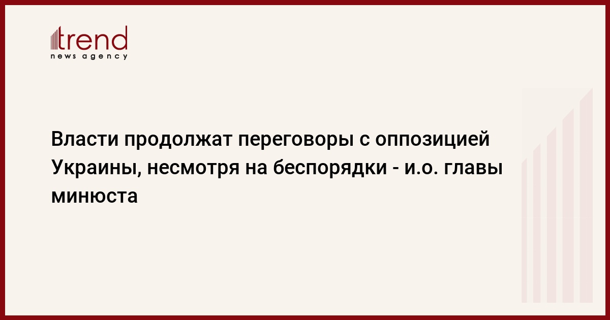 Исполняющая обязанности главы министерства юстиции Украины Елена Лукаш заявила, что власти продолжат переговоры с украинской оппозицией, несмотря на беспорядки, передает РИА Новости со ссылкой на сайт президента страны.