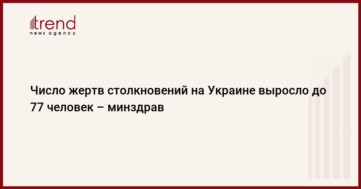 Число погибших в ходе беспорядков на Украине выросло до 77 человек, передает в пятницу РИА Новости со ссылкой на сайт минздрава страны.