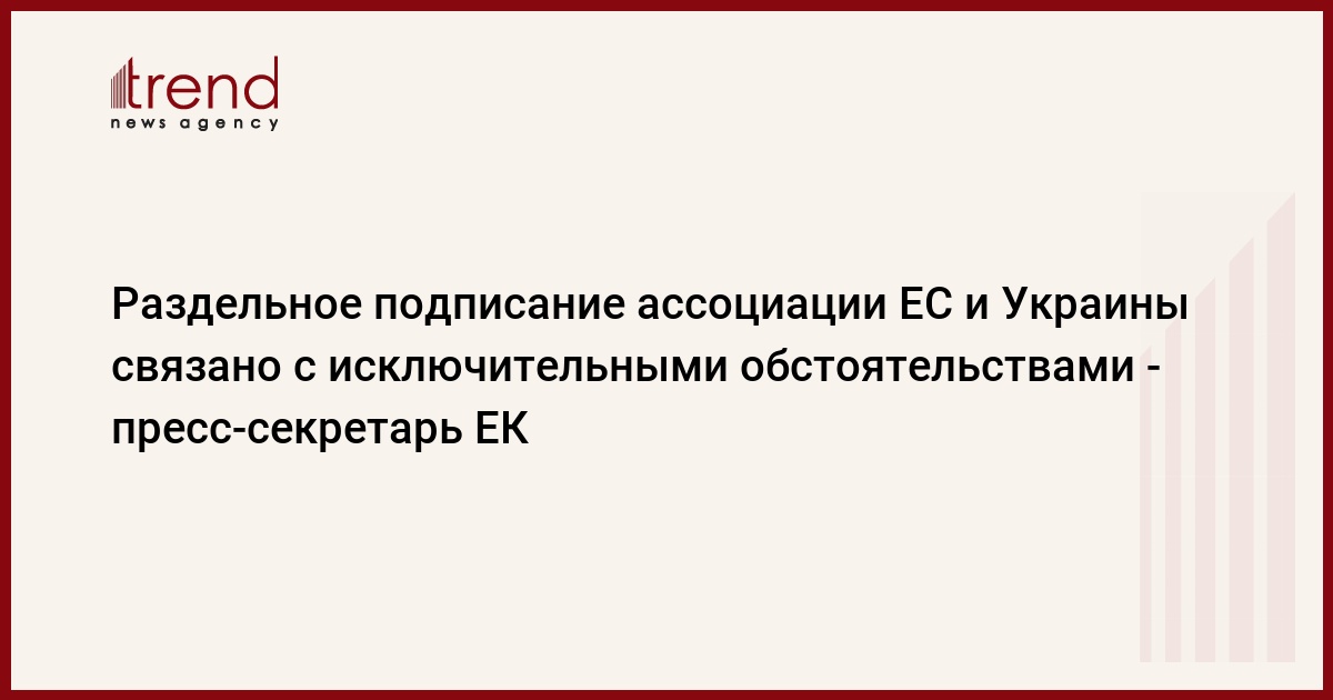 Разделение подписания соглашения об ассоциации ЕС и Украины на политическую и экономическую части вызвано экстраординарной ситуацией, заявил пресс-секретарь Еврокомиссии Алехандро Ульсуррун де Асанса и Муньос (Alejandro Ulzurrun de Asanza y Munoz), передает РИА Новости.