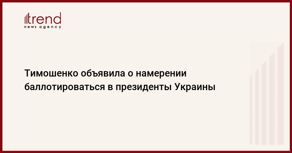 Экс-премьер Украины Юлия Тимошенко заявила о намерении баллотироваться в украинские президенты от партии "Батькивщина", передает РИА Новости.
