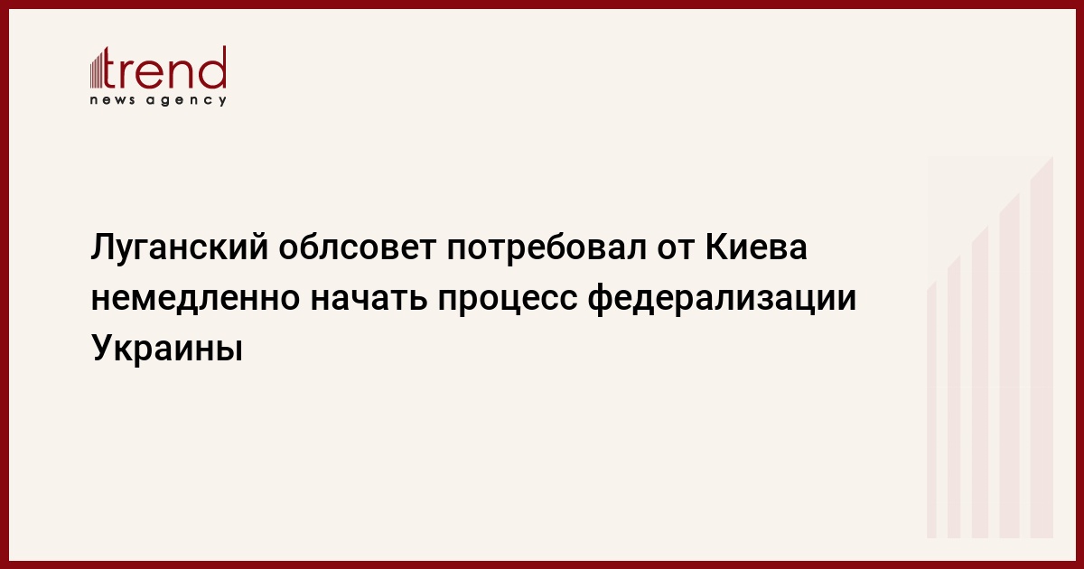 Депутаты Луганского облсовета требуют от киевских властей немедленно внести изменения в конституцию Украины, чтобы обеспечить процесс федерализации страны. Такое заявление президиума Луганского областного совета опубликовала в понедельник пресс-служба законодательного органа, сообщает ИТАР-ТАСС.