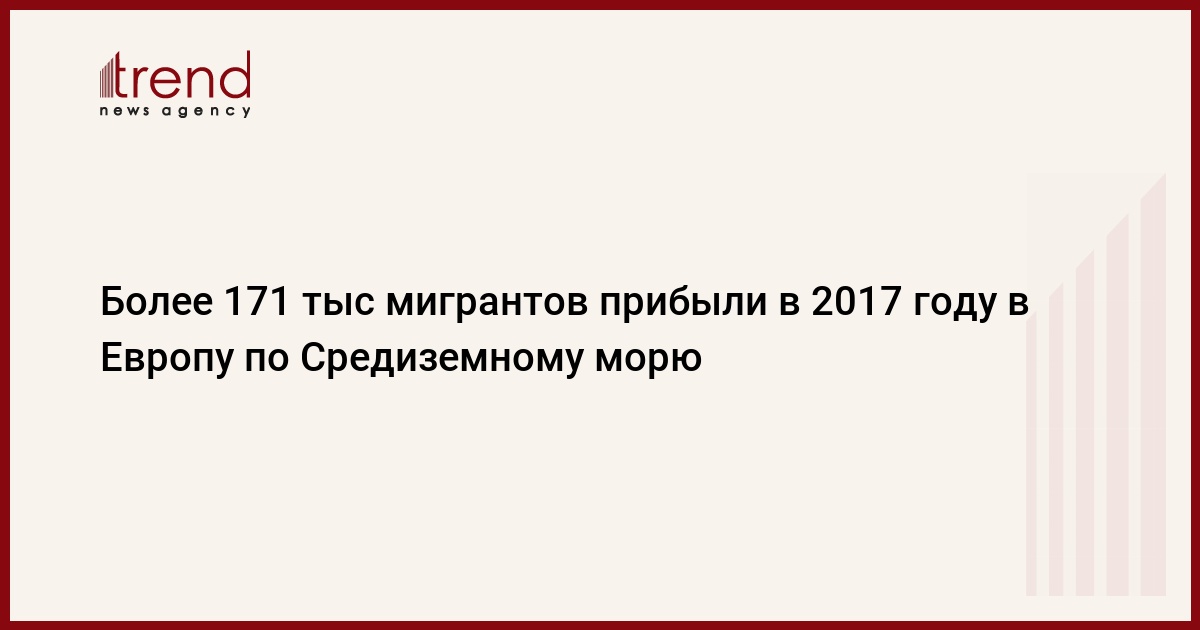 Число прибывших в 2017 году в Европу по Средиземному морю мигрантов и беженцев превысило 171 тысячу, более 3 тысяч погибли в пути. Об этом сообщила в Женеве 5 января Международная организация по миграции (МОМ), передает ТАСС.