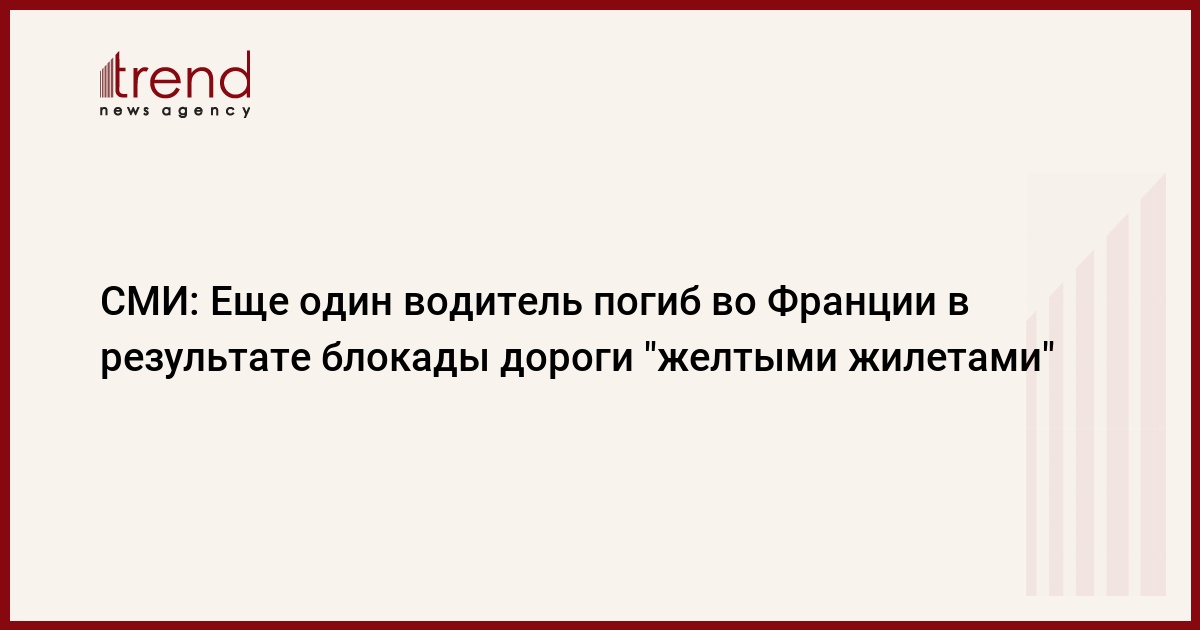 Как указывается, инцидент произошел в пятницу в 23:45, 36-летний водитель погиб на месте аварии. После случившегося "желтые жилеты" сразу же прекратили блокаду дороги. "Погибший водитель стал десятой жертвой, связанной с действиями движения", - подчеркивает телеканал.