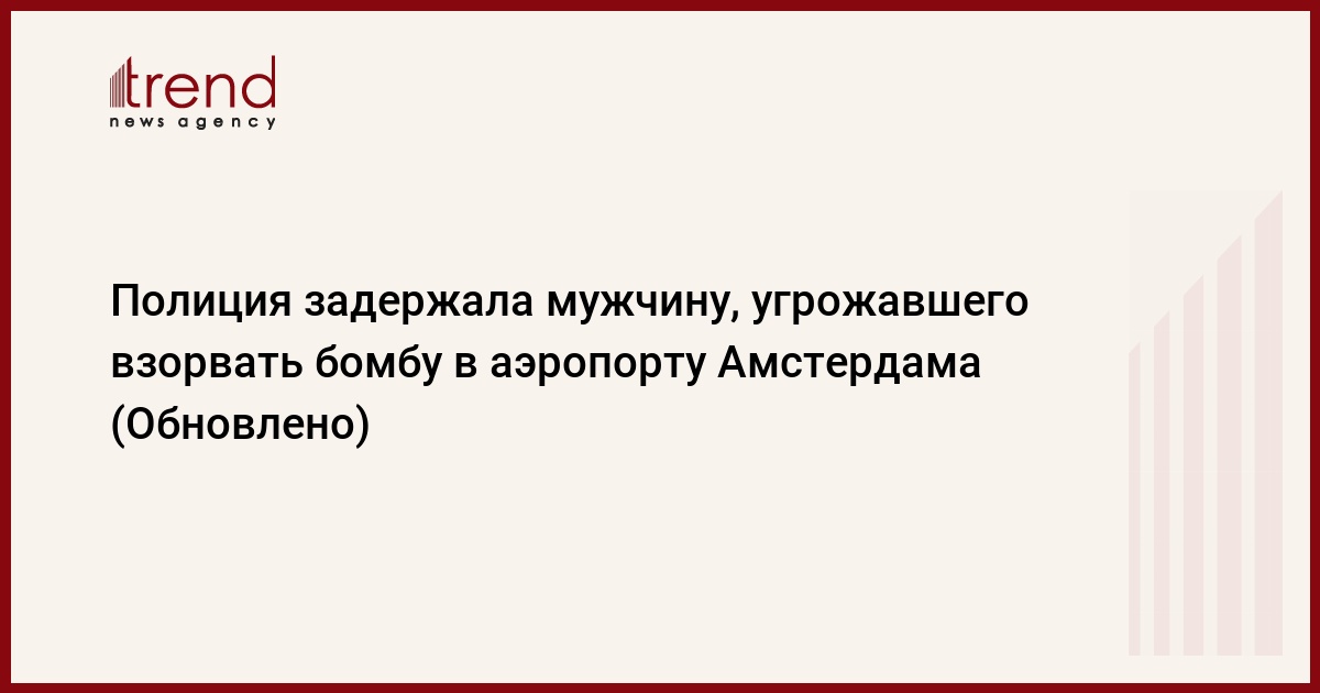 Полиция Амстердама задержала мужчину, угрожавшего взорвать бомбу в терминале аэропорта Схипхол. Об этом, как передает Trend со ссылкой на ТАСС, правоохранители сообщили в понедельник в Twitter.