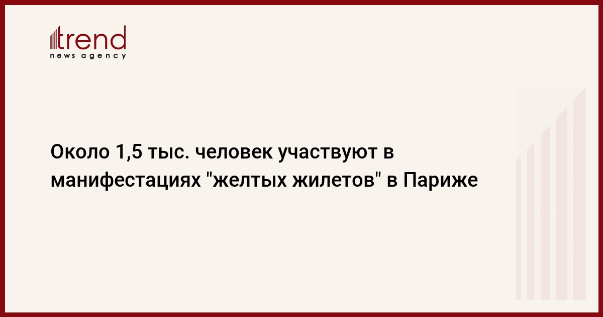 Манифестация "желтых жилетов" в Париже собрала в воскресенье около 1,5 тыс. человек. Как передаёт Trend со ссылкой на ТАСС об этом сообщила префектура столичной полиции.