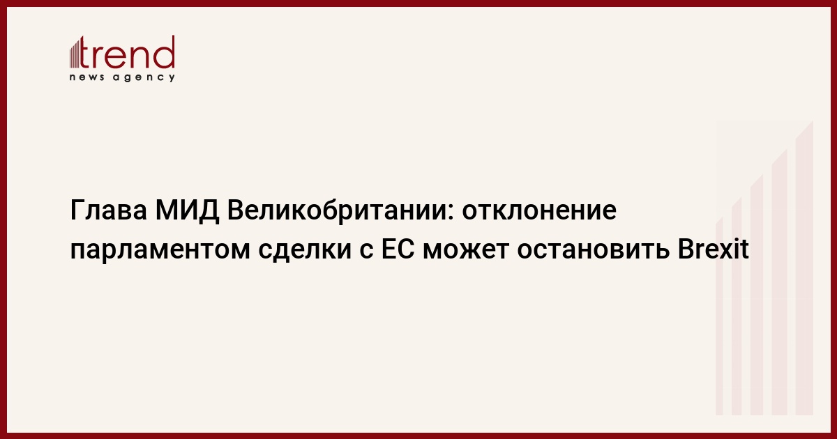 Повторное отклонение британским парламентом проекта соглашения об условиях выхода королевства из состава ЕС может остановить Brexit. Об этом в эфире вещательной корпорации Би-би-си заявил в воскресенье министр иностранных дел Великобритании Джереми Хант, передает Trend со ссылкой на ТАСС.