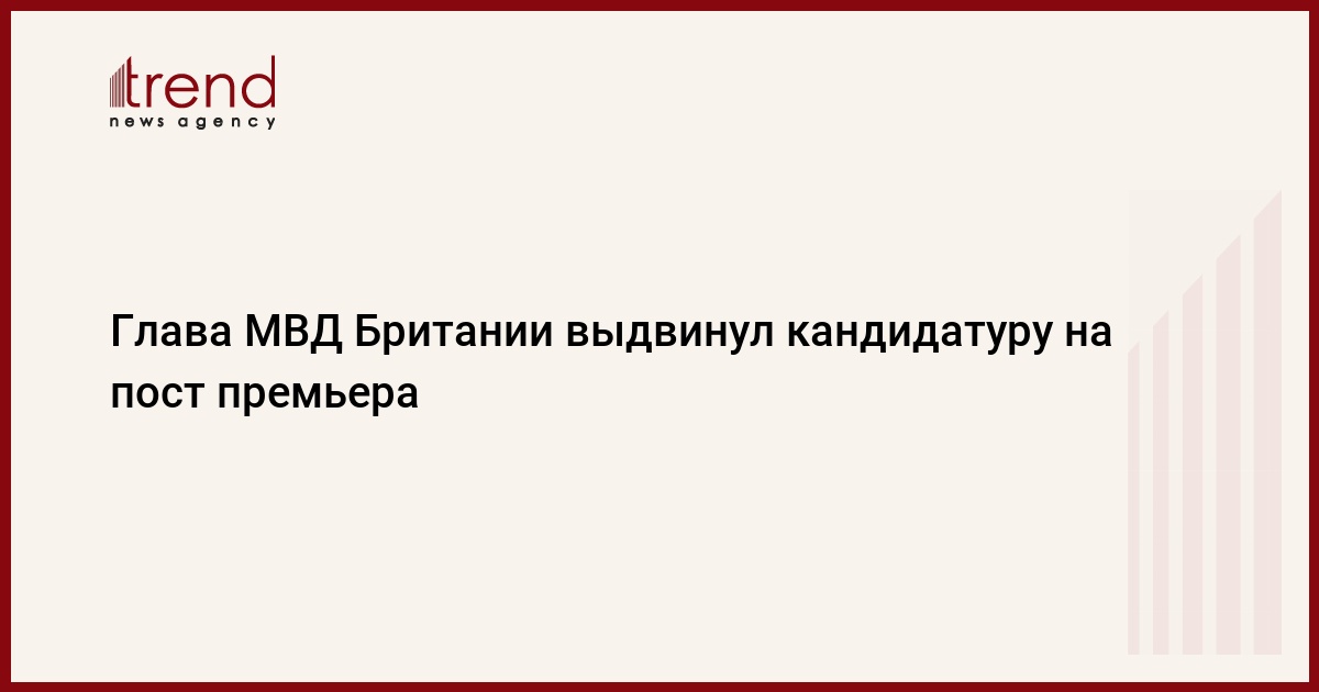 БАКУ /Trend/ - Министр внутренних дел Великобритании Саджид Джавид выдвинул свою кандидатуру на пост лидера консервативной партии и премьер-министра, став девятым претендентом на кресло главы британского правительства, сообщает Trend со ссылкой на РИА Новости.