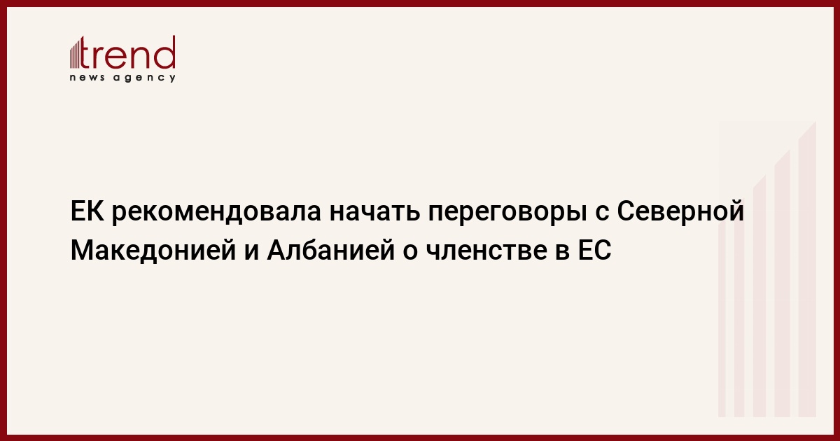 Еврокомиссия (ЕК) рекомендует Совету ЕС начать переговоры с Северной Македонией и Албанией о вступлении этих стран в состав Евросоюза. Об этом заявил в среду еврокомиссар по политике соседства и вопросам расширения Йоханнес Хан, выступая в Европарламенте, передает Trend со ссылкой на Агентство ТАСС