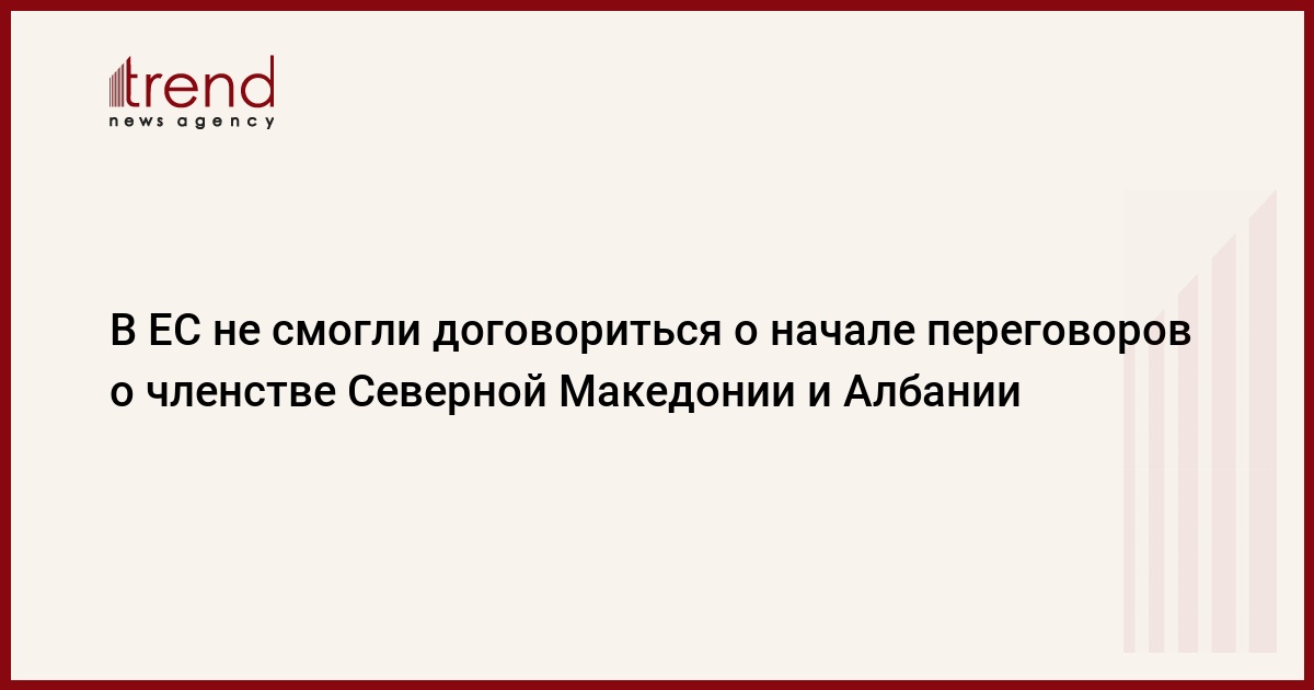 Главы государств и правительств Евросоюза после шестичасовых дискуссий не смогли договориться об открытии переговоров с Северной Македонией и Албанией о вступлении этих стран в сообщество. Об этом сообщил журналистам европейский источник по итогам первого дня саммита ЕС в Брюсселе, передает Trend со ссылкой на ТАСС.