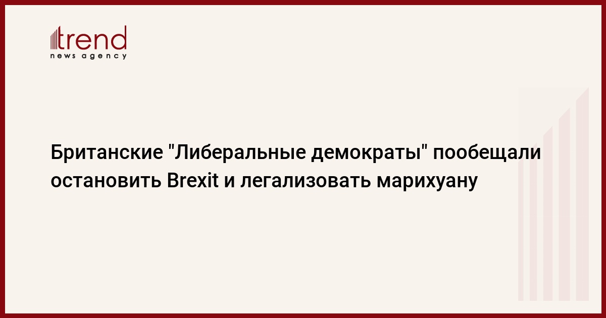 Британская партия "Либеральные демократы", участвующая в досрочных выборах в парламент страны, выступила с обещаниями остановить Brexit и легализовать в королевстве марихуану. Соответствующие пункты содержатся в манифесте партии, который представила в среду ее глава Джо Суинсон, передает Trend со ссылкой на ТАСС.