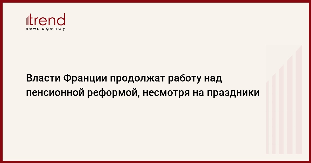 Французское правительство продолжит работать над улучшением проекта пенсионной реформы в период предстоящих праздников. Об этом, как передает Trend со ссылкой на ТАСС, сообщил в субботу президент Франции Эмманюэль Макрон, находящийся с визитом в Кот-д'Ивуаре.