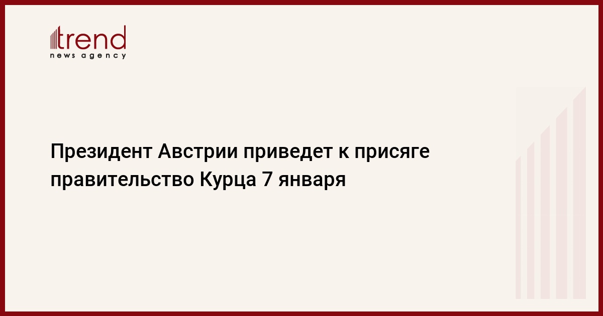 Федеральный президент Александер Ван дер Беллен приведет к присяге новое правительство Австрии 7 января. Об этом сообщила в субботу канцелярия главы государства, передает Trend со ссылкой на ТАСС.