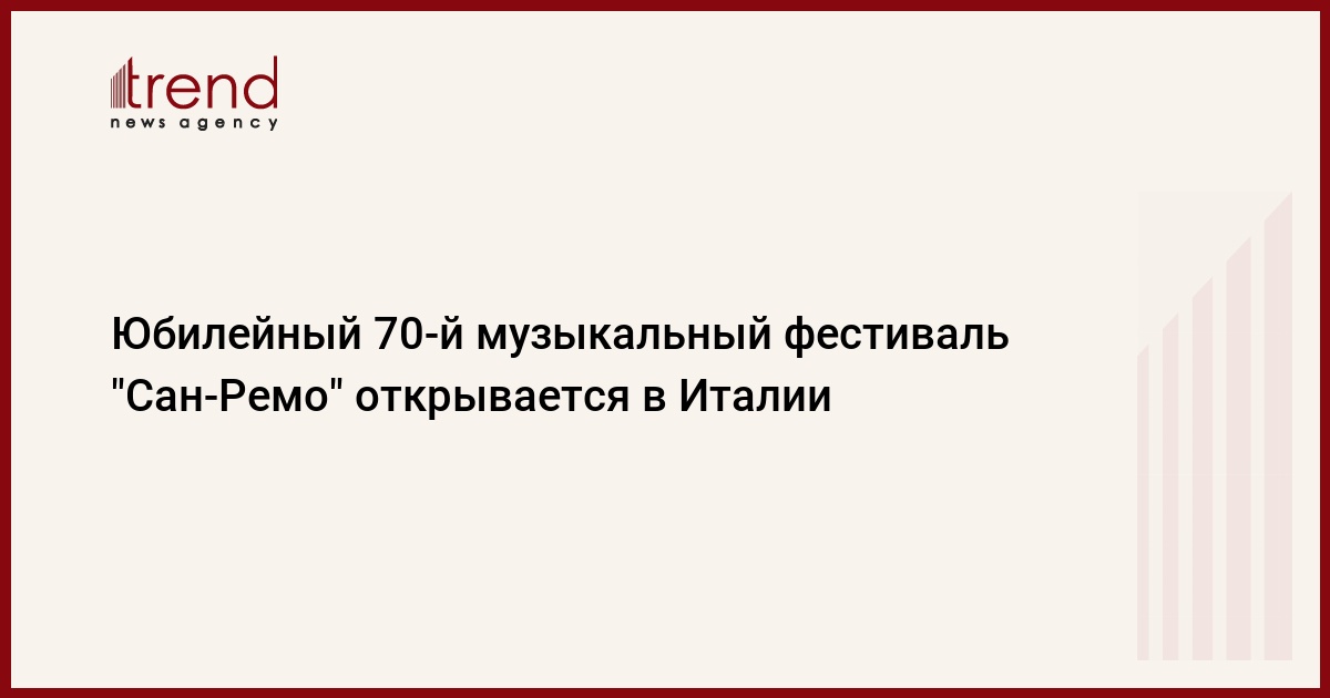 Юбилейный 70-й фестиваль итальянской эстрады "Сан-Ремо" открылся в одноименном курортном городке на лигурийском побережье Италии, передает Trend со ссылкой на РИА Новости.