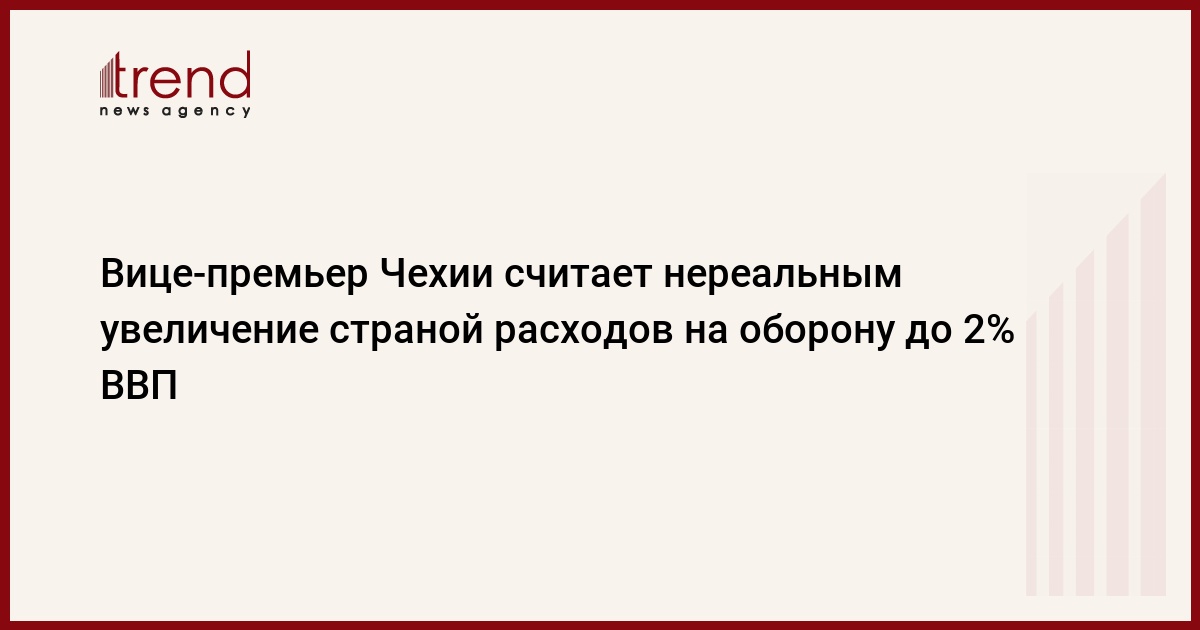 "Отсутствует [в Чехии] политическая воля достичь этого показателя [в 2024 году], - отметил он. - Если мы захотим его достичь, то для нас это будет означать принципиальное изменение структуры государственного бюджета или начало принципиальной дискуссии о доходных статьях госбюджета. Нам неоткуда взять [дополнительно] 60 млрд крон (примерно $3 млрд - прим. ТАСС)".
