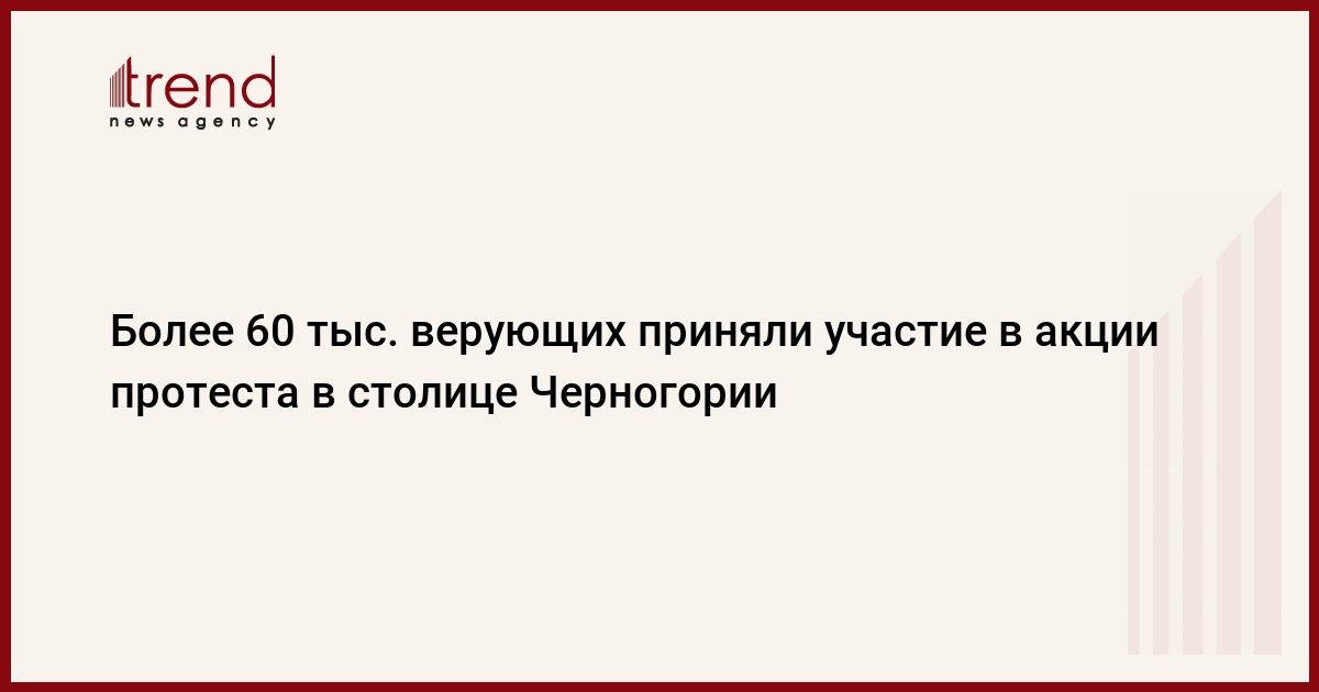 Более 60 тыс. верующих приняли участие в молебнах и особых протестных шествиях в столице Черногории Подгорице в воскресенье вечером. Собравшиеся протестовали против закона о свободе вероисповедания, ущемляющего интересы СПЦ, передает Trend со ссылкой на ТАСС.