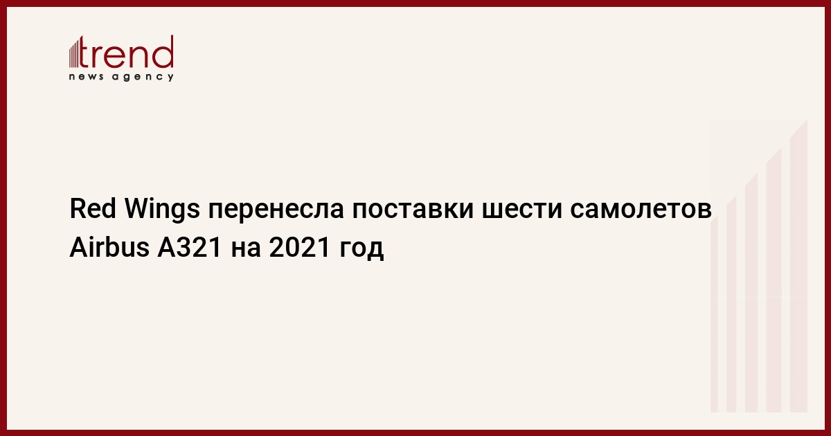 Авиакомпания Red Wings перенесла поставки шести самолетов Airbus A321 на 2021 год. Об этом журналистам сообщил гендиректор перевозчика Евгений Ключарев, передает Trend со ссылкой на ТАСС.