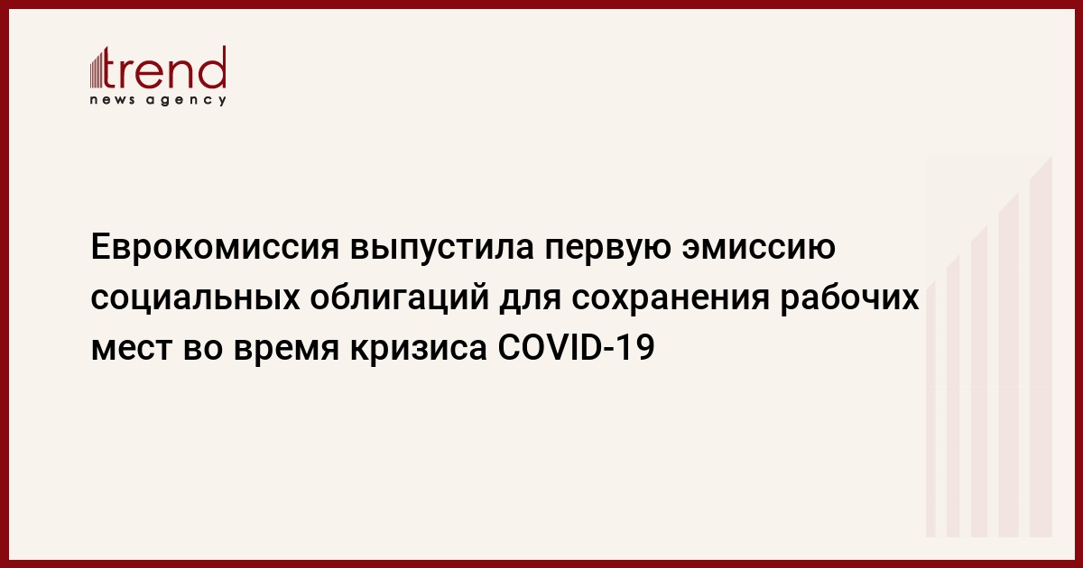 Европейская комиссия выпустила первую эмиссию социальных облигаций ЕС для сохранения рабочих во время кризиса пандемии коронавируса в рамках займа SURE ("Надежный"), передает Trend со ссылкой на Интерфакс.