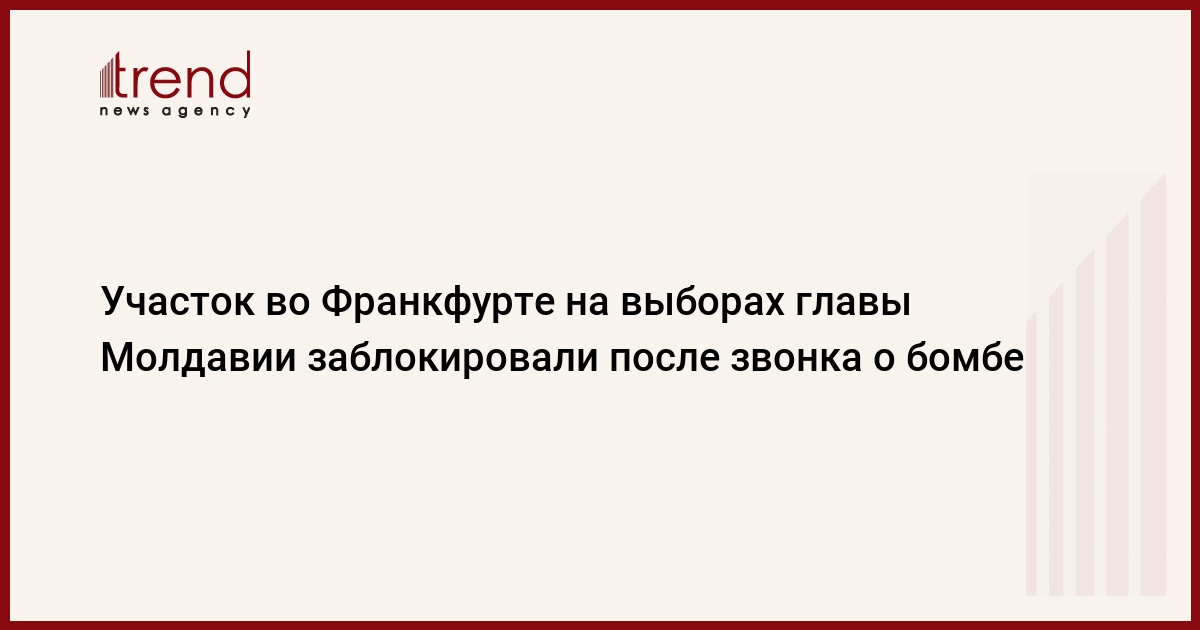 Работа избирательного участка во Франкфурте-на-Майне на выборах президента Молдавии заблокирована после сообщения о бомбе. Об этом проинформировало в воскресенье Министерство иностранных дел и европейской интеграции Молдавии, передает Trend со ссылкой на ТАСС.