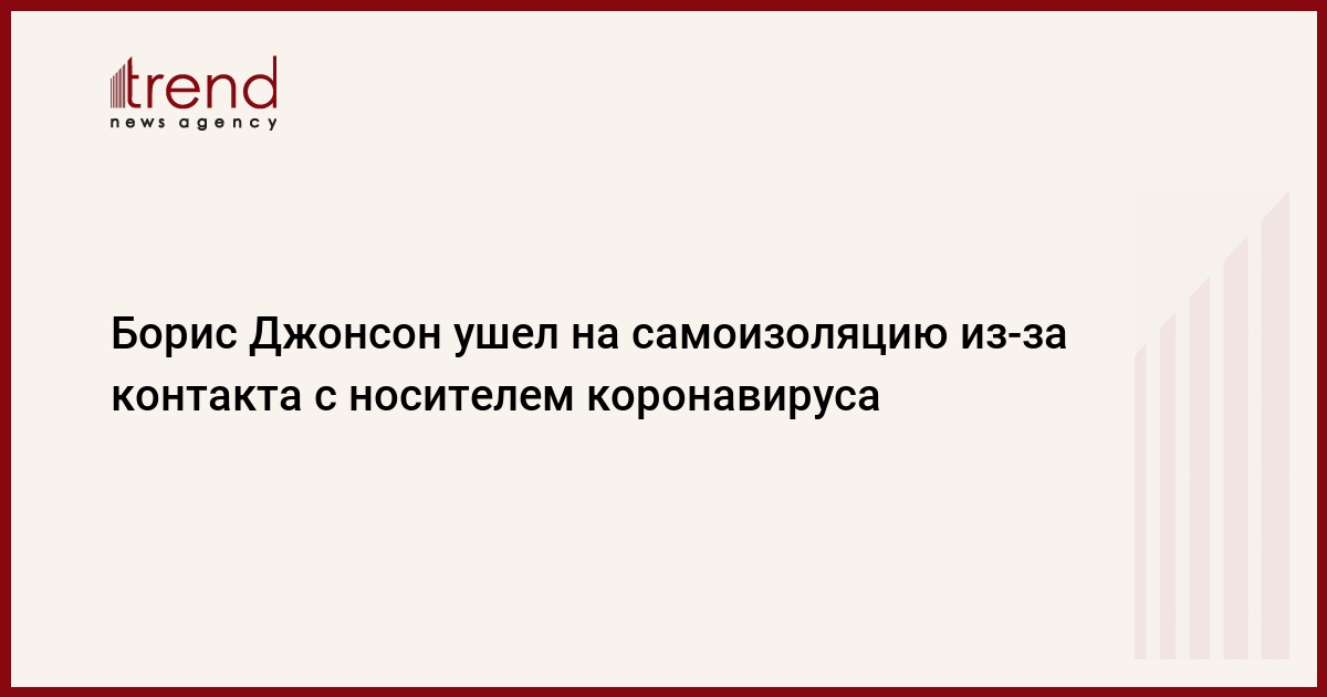 Премьер-министр Великобритании Борис Джонсон получил уведомление о том, что должен самоизолироваться из-за контакта с человеком, инфицированным коронавирусом. Об этом говорится в сообщении, распространенном в воскресенье канцелярией главы правительства, передает Trend со ссылкой на ТАСС.