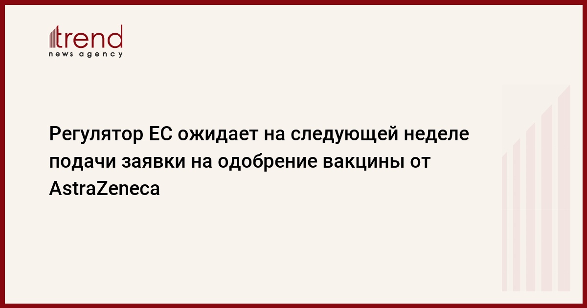 "После получения дополнительных сведений от компании [AstraZeneca] EMA ожидает, что AstraZeneca подаст на следующей неделе заявку на получение временного регистрационного удостоверения для ее вакцины от коронавируса", - говорится в публикации.