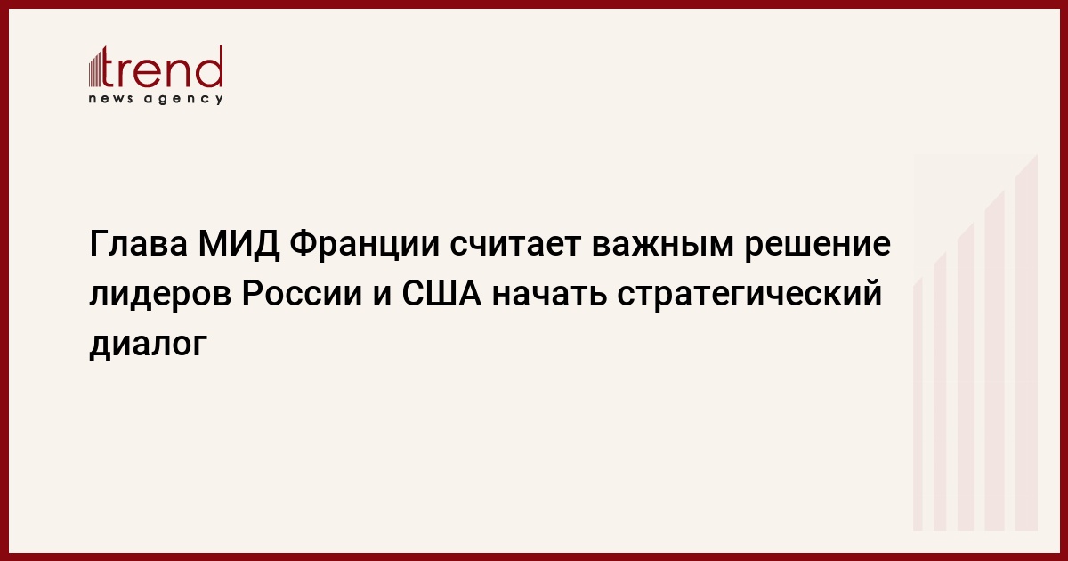 Глава МИД Франции Жан-Ив Ле Дриан приветствовал достижение на встрече президента России Владимира Путина и президента США Джо Байдена в Женеве договоренности начать стратегический диалог, передает Trend со ссылкой на ТАСС.