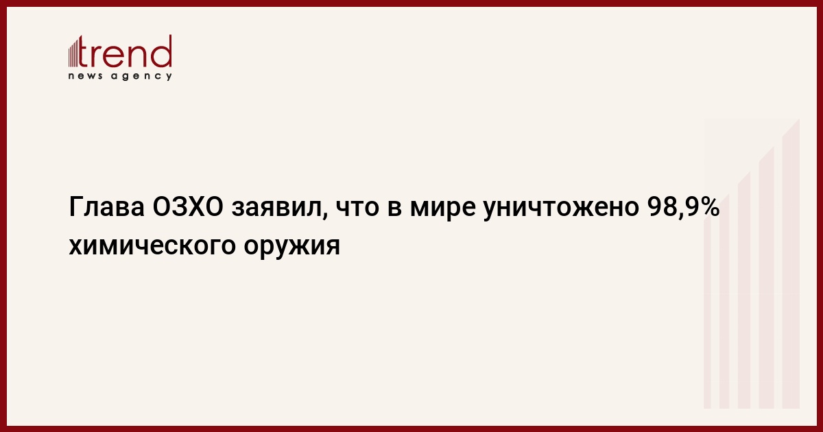 Организация по запрещению химического оружия (ОЗХО) может подтвердить уничтожение в мире 98,9% запасов химоружия. Об этом объявил в понедельник глава организации Фернандо Ариас, выступая на 26-й сессии Конференции государств - участников ОЗХО, передает Trend со ссылкой на ТАСС.