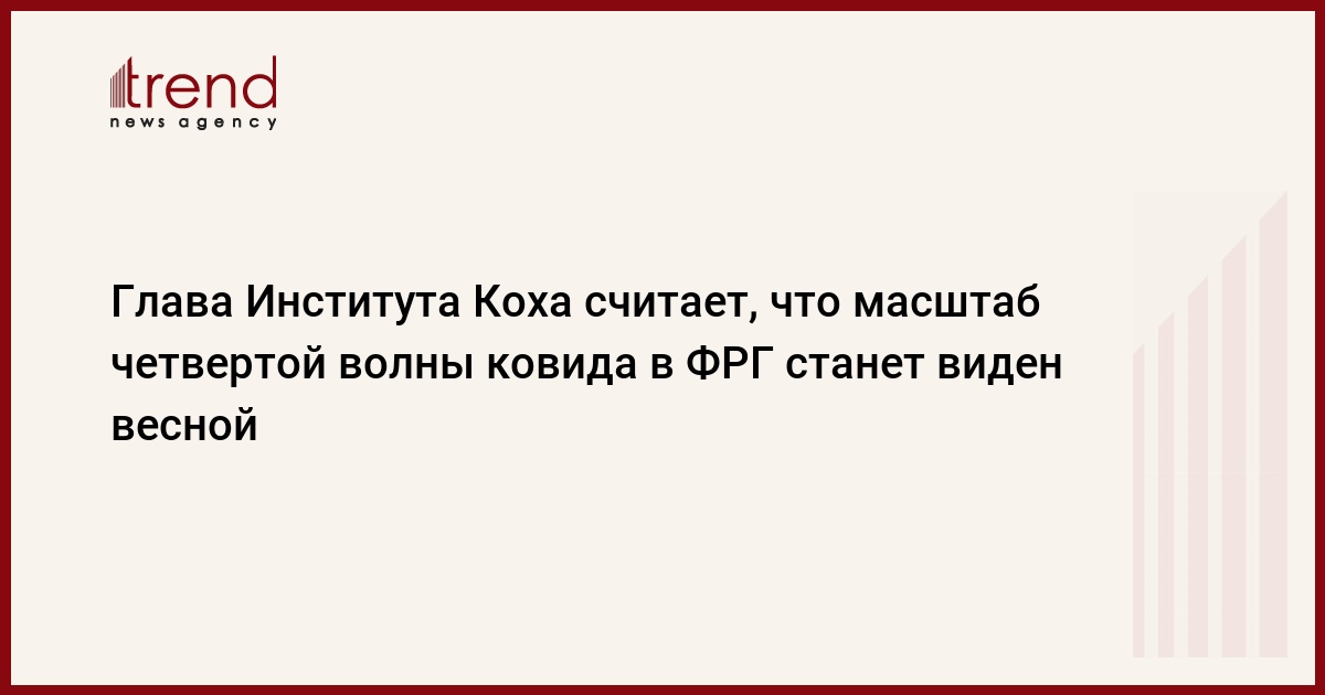 Глава Института вирусологии имени Роберта Коха (подчиняется Минздраву ФРГ) Лотар Вилер полагает, что весь масштаб четвертой волны коронавируса в стране станет очевиден лишь через несколько месяцев, то есть весной. Такое мнение он высказал в среду агентству DPA, передает Trend со ссылкой на ТАСС.