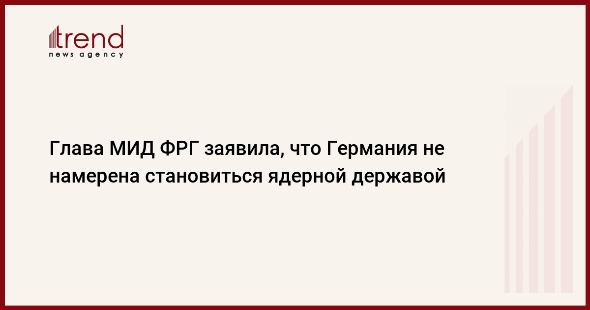 Германия не планирует входить в число ядерных держав, однако сохранит участие в обеспечении "ядерного зонтика" НАТО, не видя в этом никаких противоречий. С таким заявлением выступила во вторник на конференции по разоружению в Стокгольме глава МИД ФРГ Анналена Бербок (от партии "зеленых"), передает Trend со ссылкой на ТАСС.