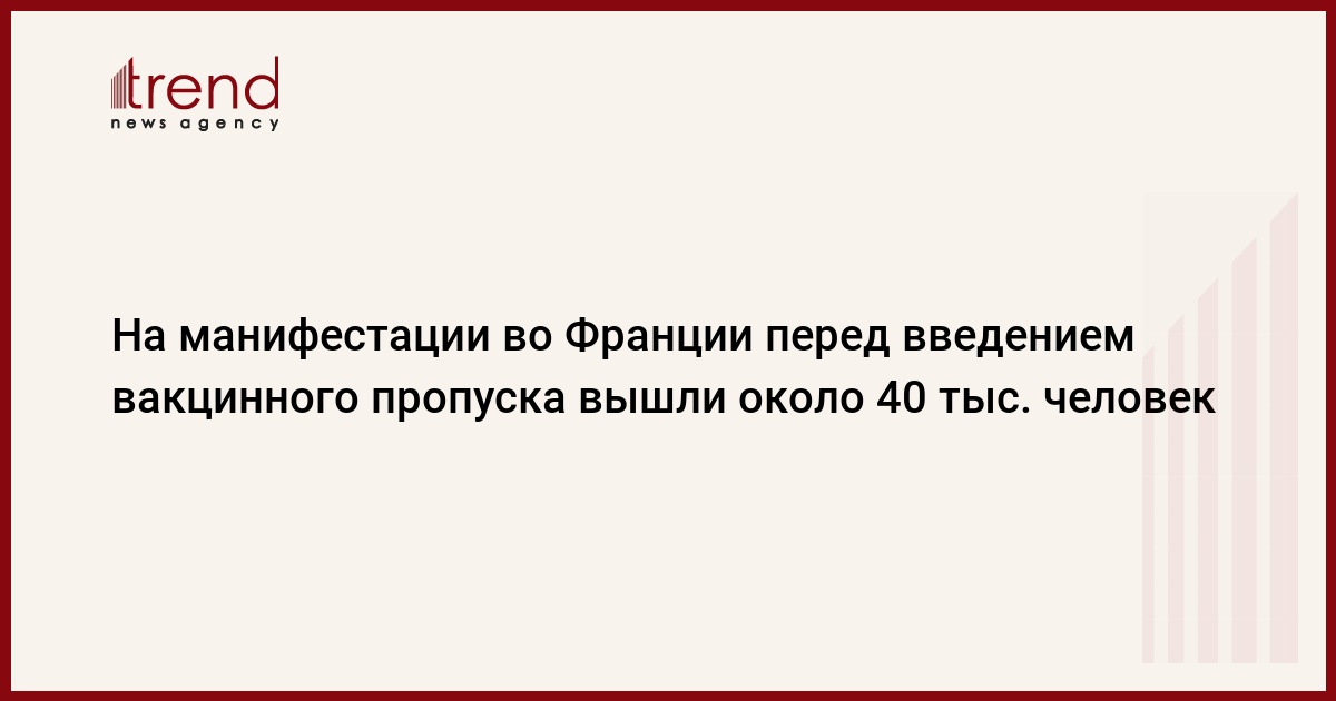Субботние акции протеста против принудительной вакцинации накануне введения вакцинного пропуска во Франции собрали около 38 тыс. человек по всей стране. Такие данные приводит агентство Agence France-Presse со ссылкой на заявление министерства внутренних дел страны, передает Trend со ссылкой на ТАСС.