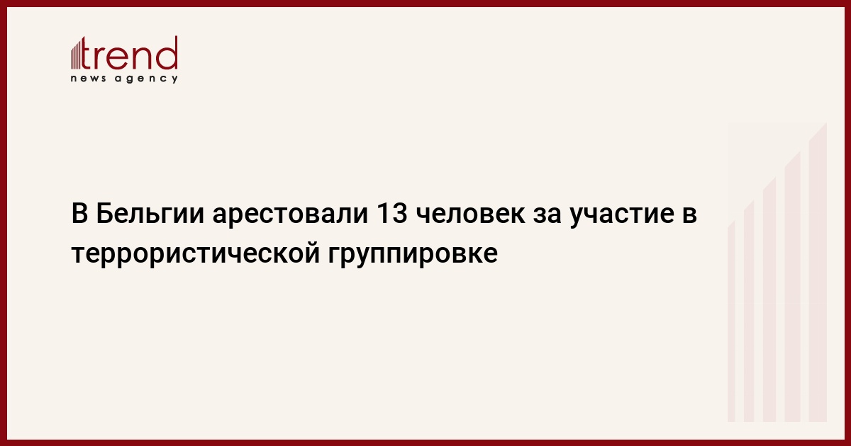 В ходе полицейской спецоперации в Бельгии 13 человек были заключены под стражу по подозрению в участии в террористической группировке. Об этом сообщила в распространенном во вторник заявлении Федеральная прокуратура королевства, передает Trend со ссылкой на ТАСС.