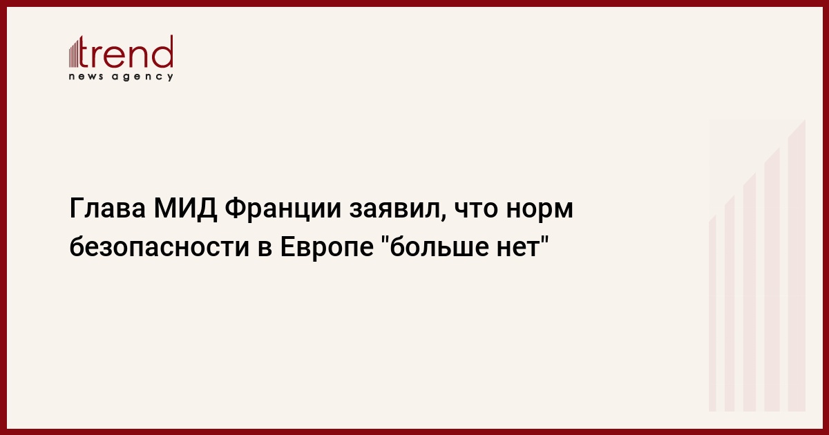 Глава МИД Франции Жан-Ив Ле Дриан заявил, что норм безопасности и стабильности в Европе "больше нет". Об это, как передает Trend со ссылкой на РЕН ТВ, сообщает Financial Times.