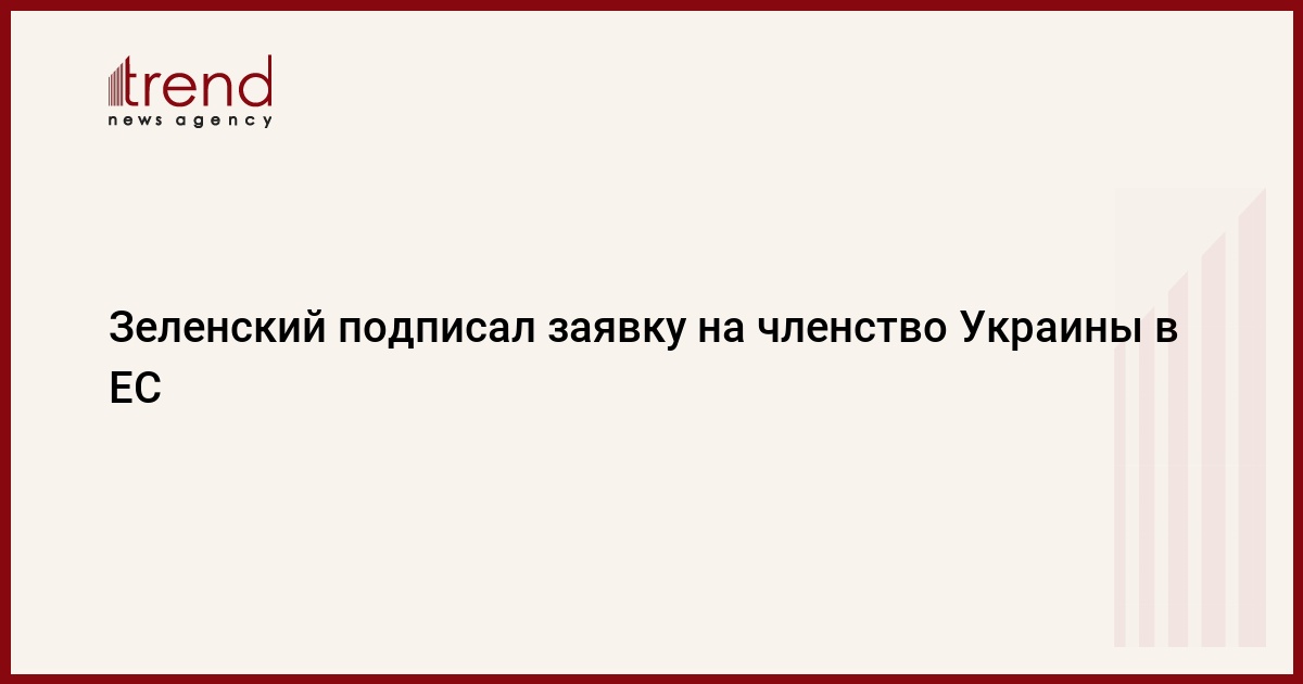 БАКУ/Trend/- Президент Украины Владимир Зеленский подписал заявку на членство страны в Европейском Союзе. Как сообщает Trend, об этом Зеленский написал в соцсети.