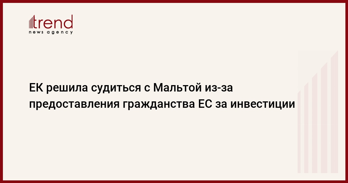 Европейская комиссия (ЕК) решила подать в суд Евросоюза на Мальту из-за продолжающейся программы "золотой паспорт" этой страны-участницы ЕС. Об этом, как передает Trend со ссылкой на Интерфакс, сообщает АР. По этой программе состоятельные иностранцы могут приобретать гражданство ЕС в обмен на крупные инвестиции.