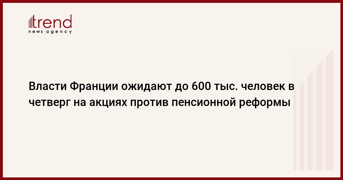 Власти Франции полагают, что в акциях протеста против пенсионной реформы в четверг примут участие до 600 тыс. человек, сообщают французские СМИ, передает Trend со ссылкой на "Интерфакс".
