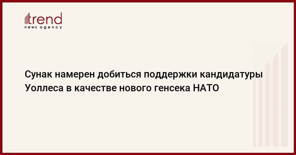 Премьер-министр Великобритании Риши Сунак попытается убедить президента США Джо Байдена поддержать назначение министра обороны Соединенного Королевства Бена Уоллеса на пост генерального секретаря НАТО, передает Trend.