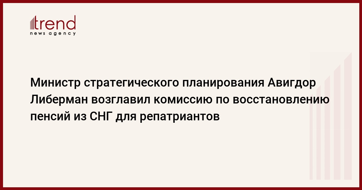 Израиль, Иерусалим /корр. Trend Р.Мамедов На сегодняшнем заседании правительства было принято решение создать специальную межминистерскую комиссию, которая рассмотрит возможность восстановления социальных прав репатриантов, сообщает информационное агентство NEWSRU. Комиссию возглавил министр стратегического планирования и лидер партии "Наш дом Израиль" Авигдор Либерман. Помимо него, в состав рабочей группы вошли министр иностранных дел Ципи Ливни, министр финансов Рони Бар-Он, министр по делам пенсионеров Рафи Эйтан, министр юстиции Даниэль Фридман, министр абсорбции Яаков Эдри и министр труда и социального обеспечения Ицхак Герцог.Как сообщает пресс-служба партии "Наш дом Израиль", для решения поставленной задачи необходимо заключить отдельные соглашения со странами исхода. В настоящее время Израиль подписал подобные договоры с 15 государствами, в том числе, Швецией, Финляндией, Францией, Данией, Норвегией, Бельгией, Германией, Италией и Австрией. Но таких соглашений со странами СНГ нет. Благодаря этим соглашениям ежегодно в Израиль поступает сумма, эквивалентная 2 млрд. шекелей.