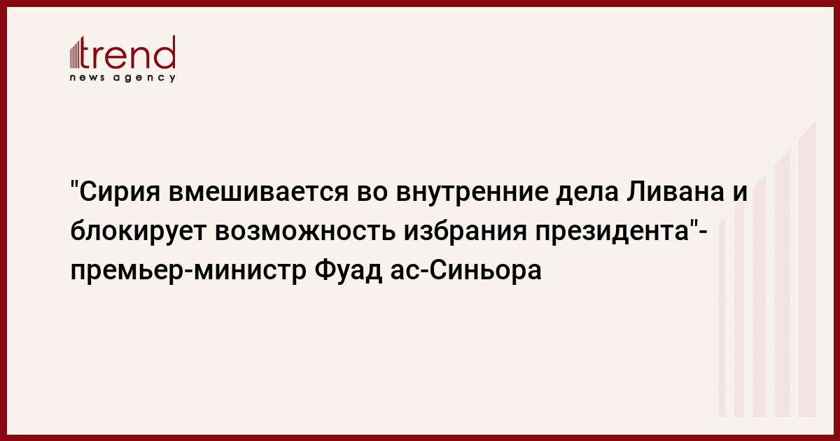 В пятницу премьер-министр Ливана Фуад ас-Синьора обвинил Сирию в том, что его страны оказалась в затяжном политическом кризисе, сообщает агентство MIGNEWS. Эти обвинения он сделала в ходе телевизионного выступления накануне арабского саммита, который должен пройти в Дамаске. "В течение более четырех месяцев у Ливана нет президента", - сказал ас-Синьора. - До этого периода и сейчас Сирия играет ведущую роль в обострении кризиса ... она вмешивается во внутренние дела Ливана и блокирует возможность достижения консенсуса при избрании парламентом кандидат на пост президента". Его слова были, в первую очередь, адресованы членам Лиги арабских государств, которые на своем саммите должны обсуждать среди прочих и политический кризис в Ливане. Этот вопрос заявлен в повестке дня предстоящего форума. Ас-Синьора сказал, что его правительство приняло решение бойкотировать ежегодного собрание ЛАГ на высшем уровне из-за вмешательства Сирии в ливанские дела. Он подчеркнул, что президентский вакуума является явным свидетельством такого вмешательства. "Ливанское правительство вновь подчеркивает свое стремление к созданию здоровых, братских отношений с Сирией на основе взаимного уважения друг друга, суверенитета и независимости", - заявил глава ливанского правительства. Он добавил, что границы между двумя странами должны быть четко определены, и призвал Сирию сотрудничать с ливанским правительством в плане разоружения группировок, действующих за пределами лагерей палестинских беженцев в Ливане. "В свете связи Сирии с палестинскими группировками ... мы призываем сирийские власти к сотрудничеству и оказанию помощи в разоружении баз боевиков, расположенных за пределами лагерей (беженцев), а также в изъятии оружия на территории палестинских лагерей", - добавил премьер-министр
