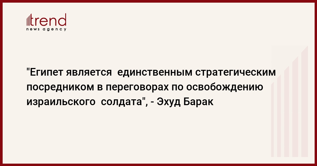 Вчера в египетском городе Александрия министр обороны Израиля Эхуд Барак встретился с президентом Египта Хосни Мубараком. Во время встречи Барак подчеркнул, что Иерусалим видит в Египте стратегического и важного участника переговоров по освобождению израильского военнослужащего Гилада Шалита.