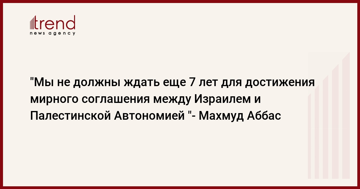 "Мы не должны ждать еще 7 лет для достижения мирного соглашения " - заявил Аббас. Палестинский лидер выразил надежду что после того как президент Джордж Буш покинет Белый Дом, новая администрация продолжит то, что мы начали и достигнет соглашения о мире.