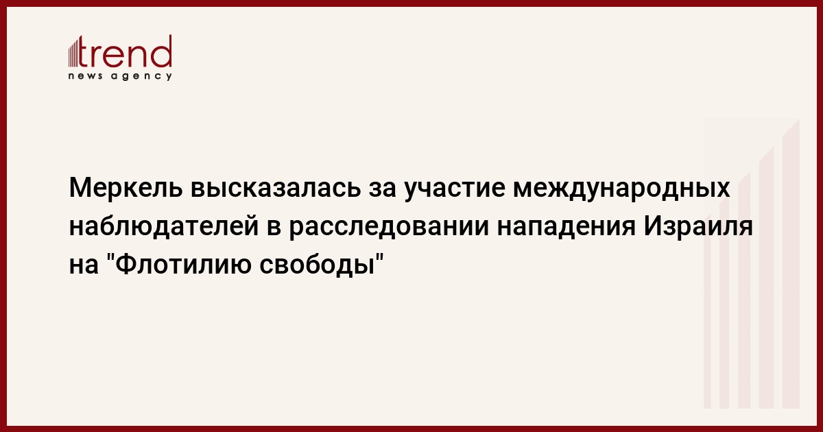 Канцлер Германии Ангела Меркель выступает за участие международных наблюдателей в расследовании нападения Израиля на "Флотилию свободы" в составе шести судов, направлявшихся в сектор Газа с гуманитарным грузом, пишет РИА Новости.