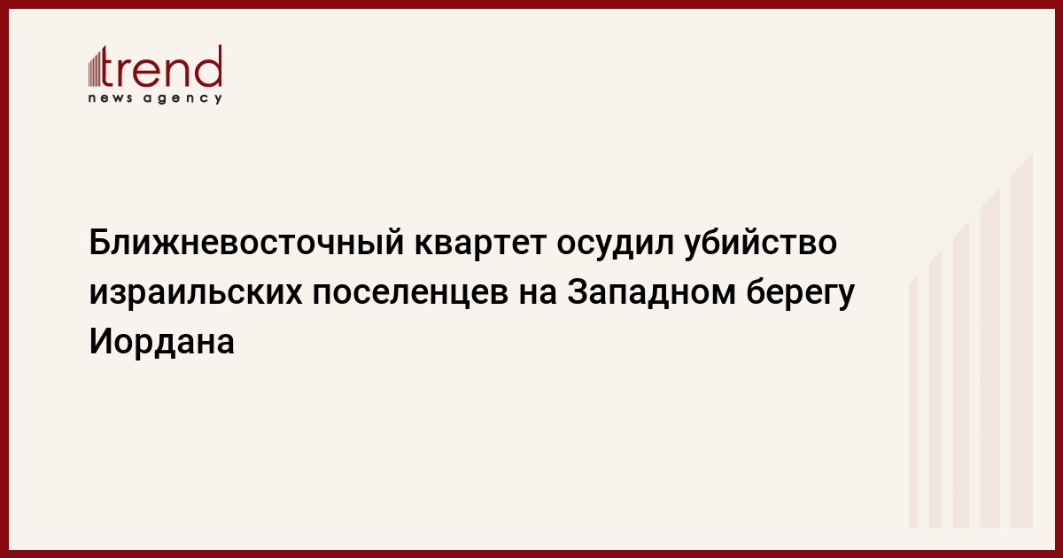 Квартет международных посредников ближневосточного урегулирования (РФ, США, ЕС, ООН) решительно осудил произошедшее в субботу убийство пяти израильских поселенцев на Западном берегу реки Иордан, сообщает агентство Франс Пресс.